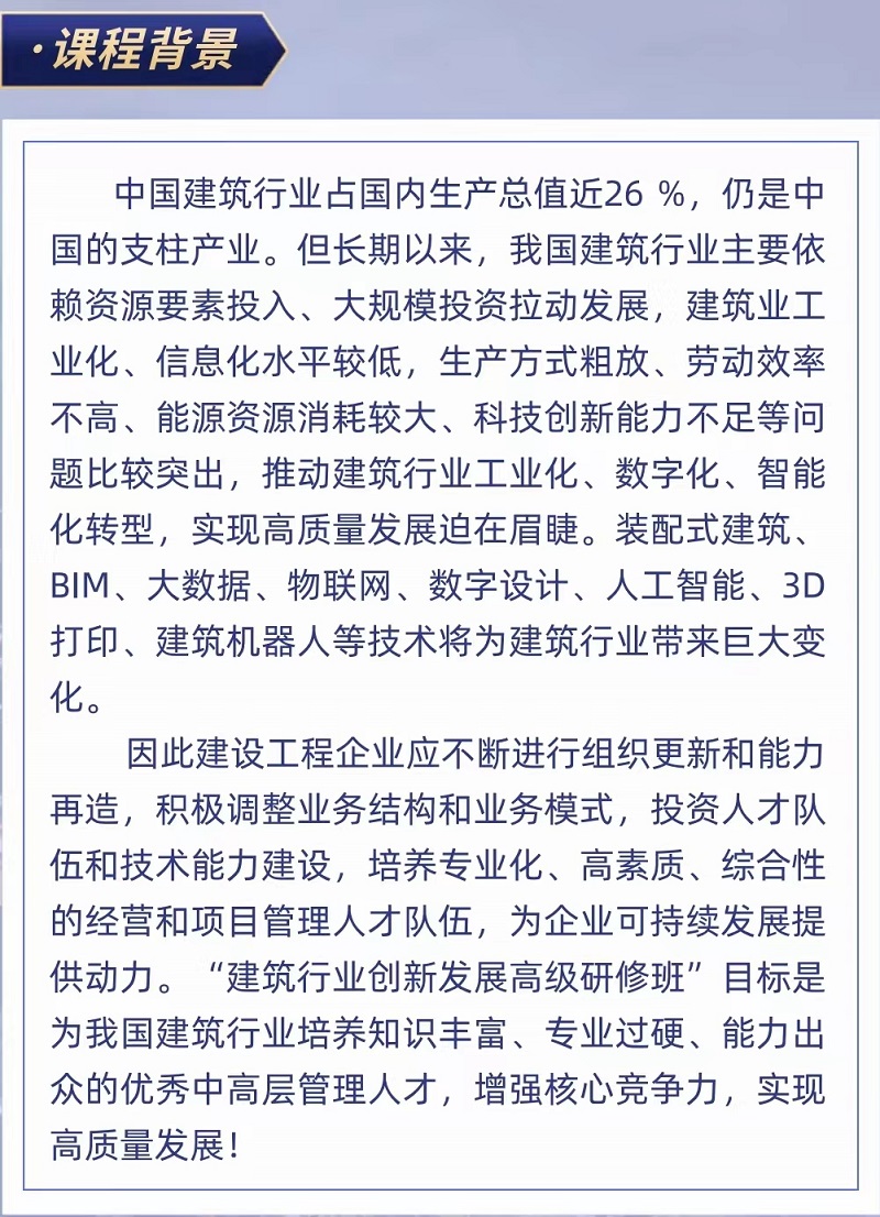 建筑行业创新发展高级研修班 课程地址:http://www.tsinghuayx.org.cn