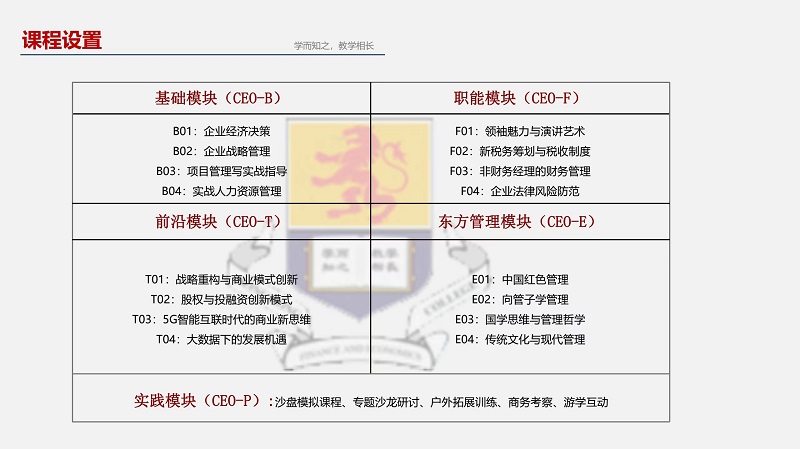 | 招生对象 | 具有大专学历,并有二年以上高层管理经验 |