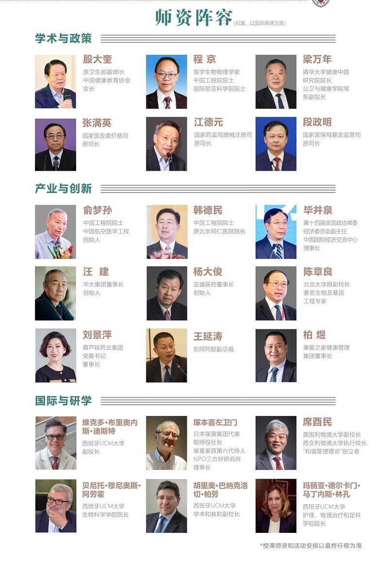 | 招生对象 | 健康产业董事长、总经理、执行董事、企业中高层管理人员 |