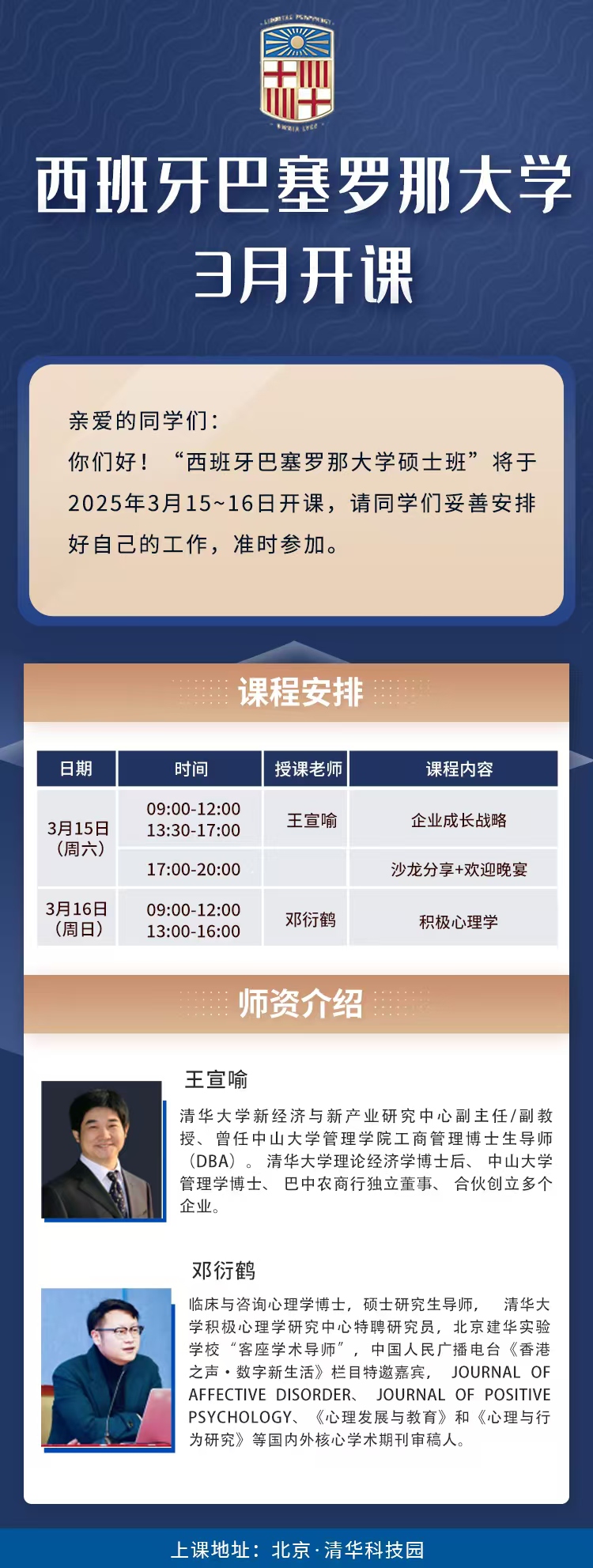 2025年3月15日巴塞罗那大学硕士学位班上课通知