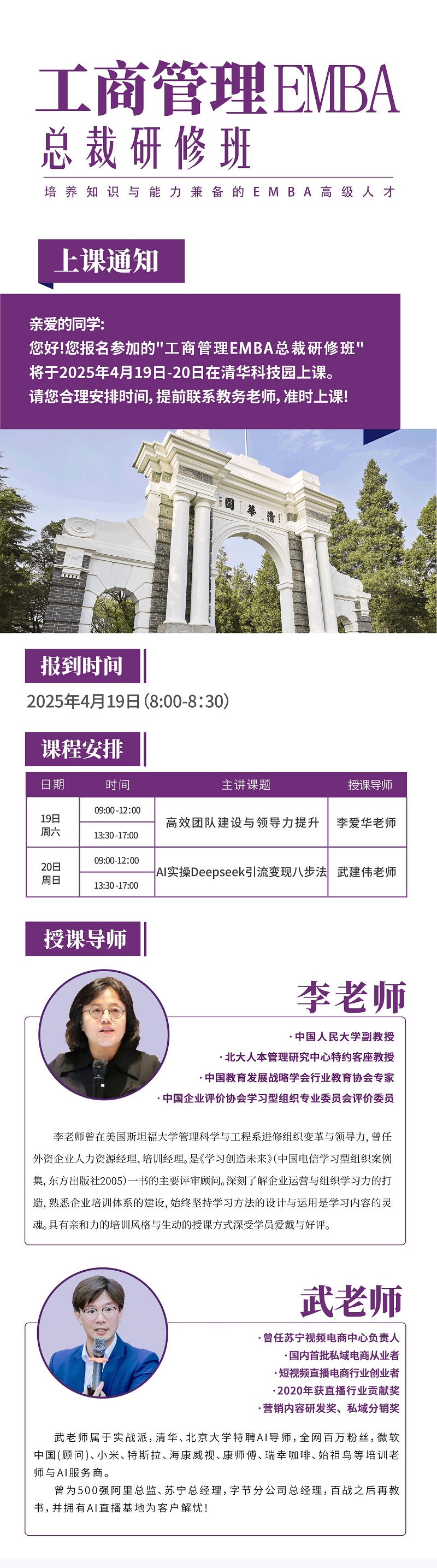 2025年4月19日工商管理EMBA研修班上课通知