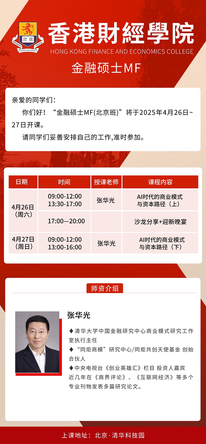 2025年4月26日金融硕士MF班上课通知
