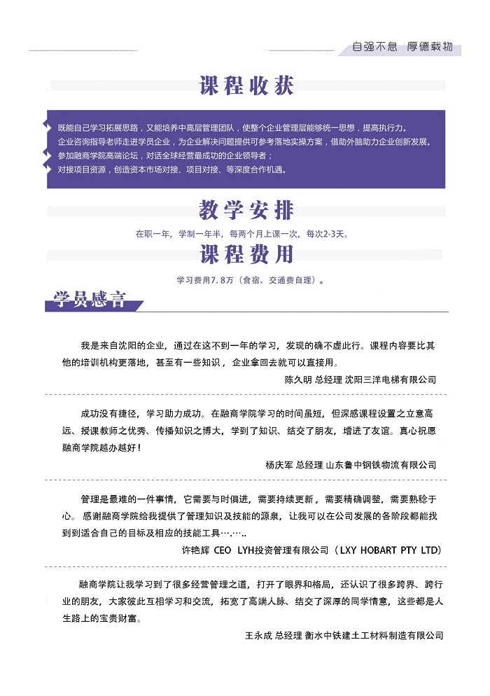 | 招生对象 | 企业董事长、总经理等高层管理人员 |