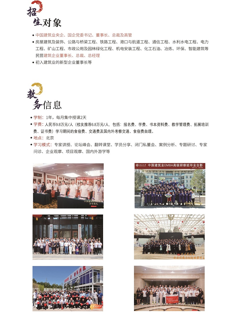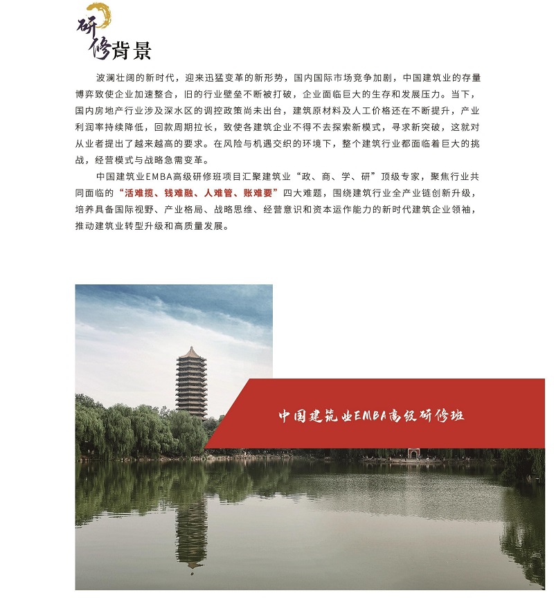 中国建筑业EMBA总裁高级研修班 在线报名:赵老师 手机:15911037933