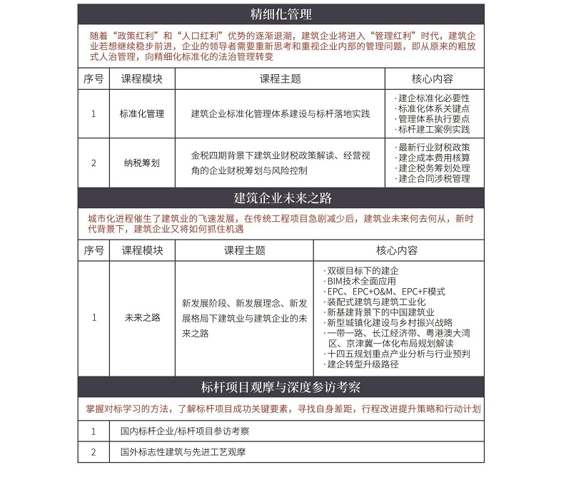 中国建筑业EMBA总裁高级研修班 课程地址: