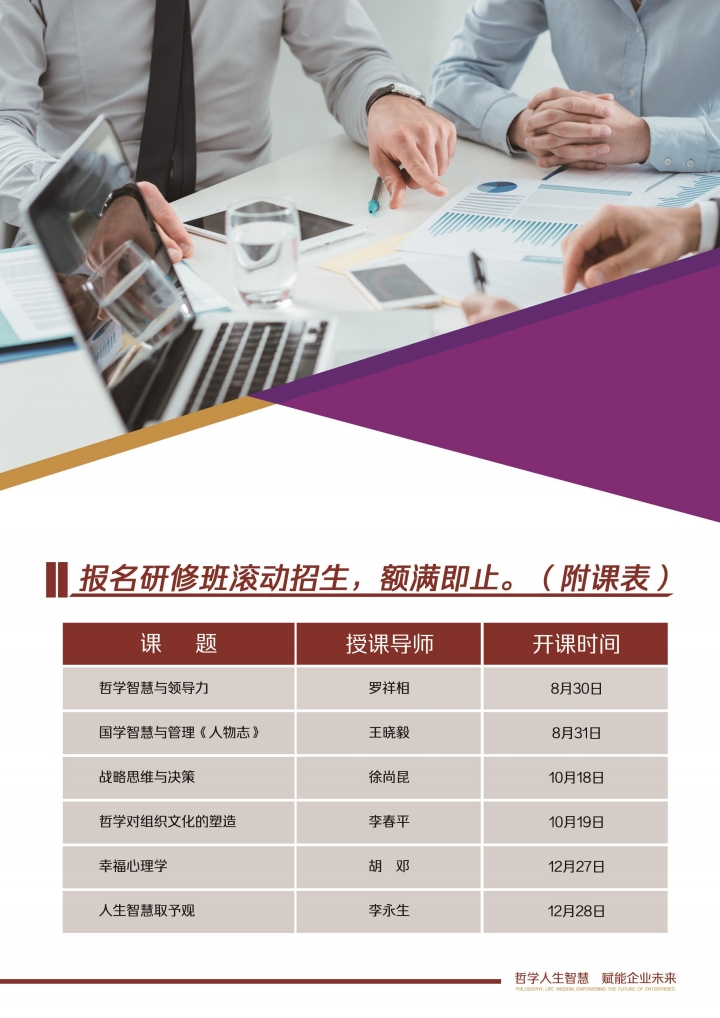清大哲学管理与人生智慧创领研修班 课程地址: