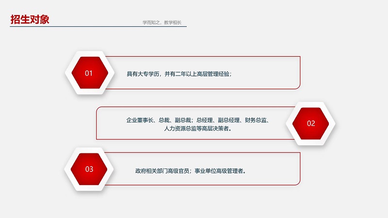 | 招生对象 | 具有大专学历,并有二年以上高层管理经验 |