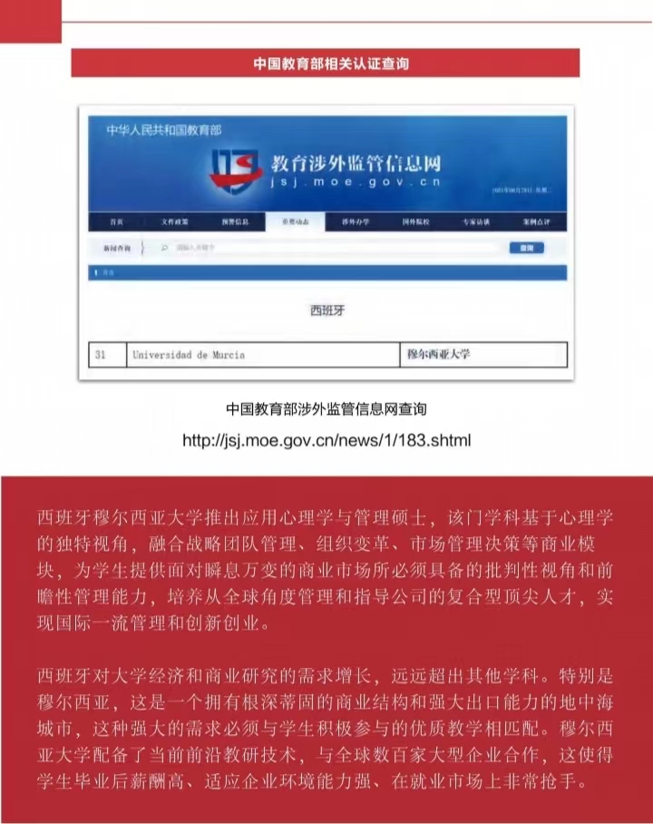 西班牙穆尔西亚大学应用心理学硕士学位班 在线报名:赵老师 手机:15911037933