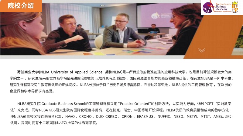 荷兰商业大学工商管理EMBA硕士项目 在线报名:赵老师 手机:15911037933