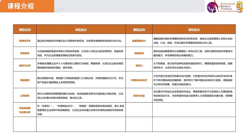 荷兰商业大学工商管理EMBA硕士项目 课程地址:
