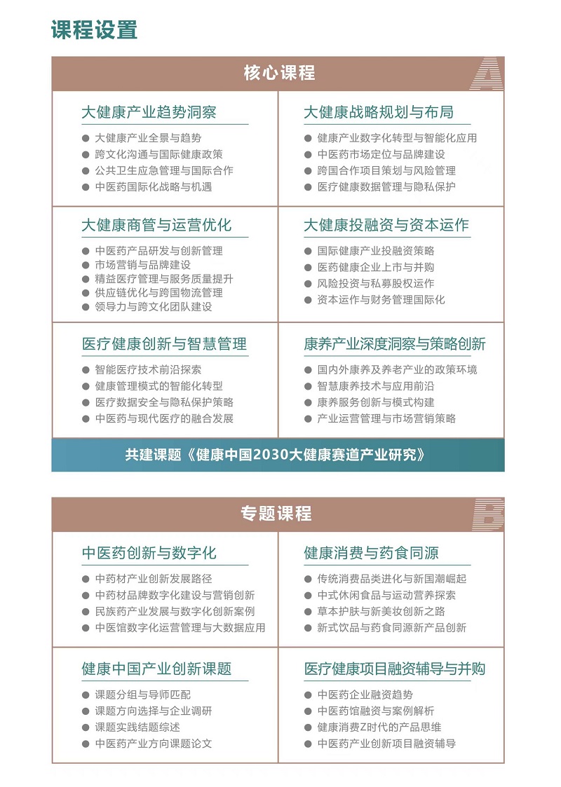 | 招生对象 | 健康产业董事长、总经理、执行董事、企业中高层管理人员 |