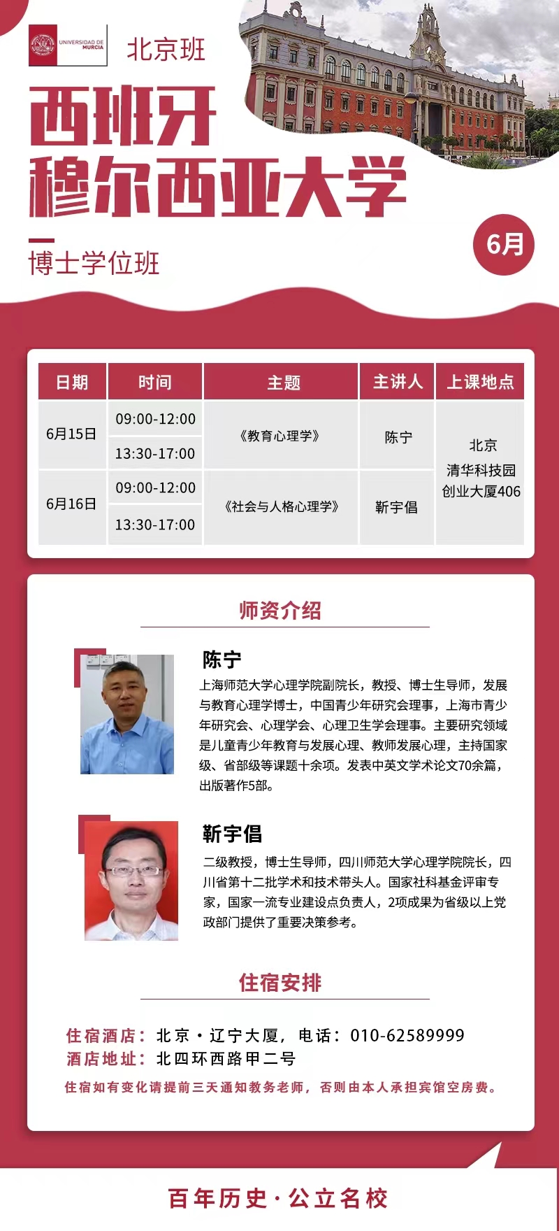 2024年6月15日西班牙穆尔西大学博士班上课通知