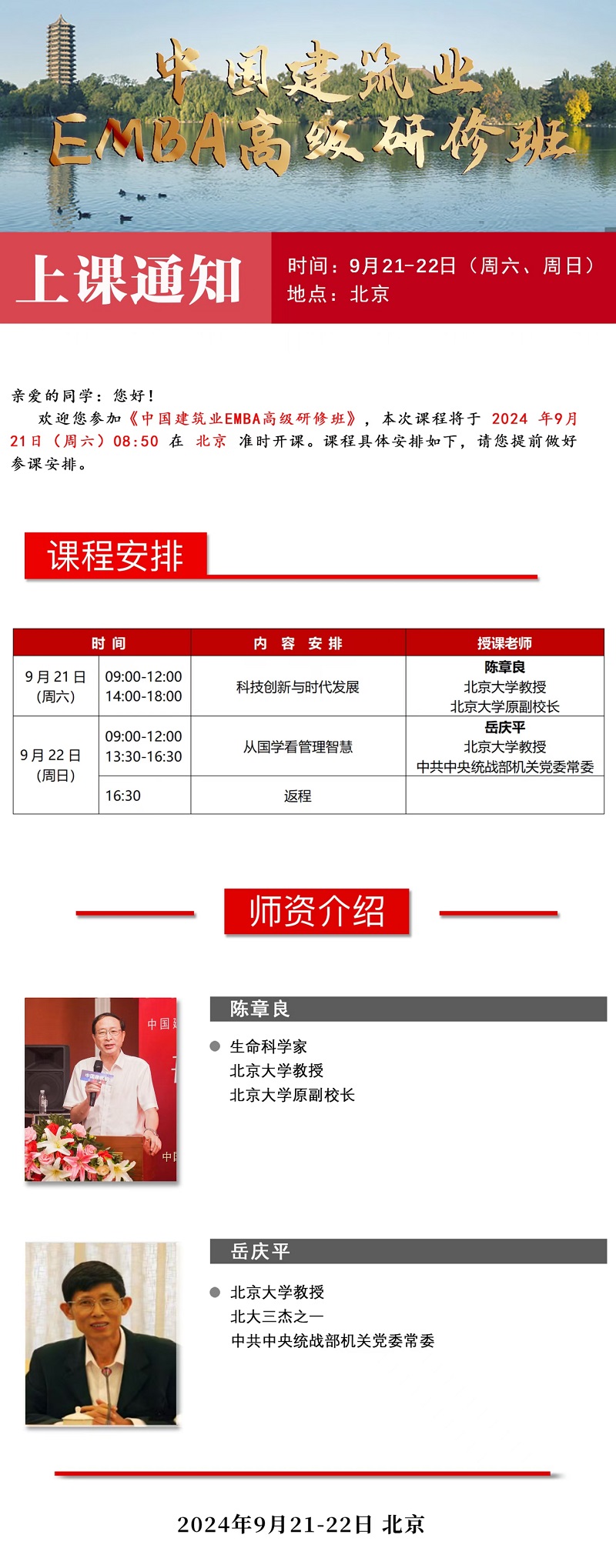 2024年9月21日中国建筑业EMBA总裁班上课通知